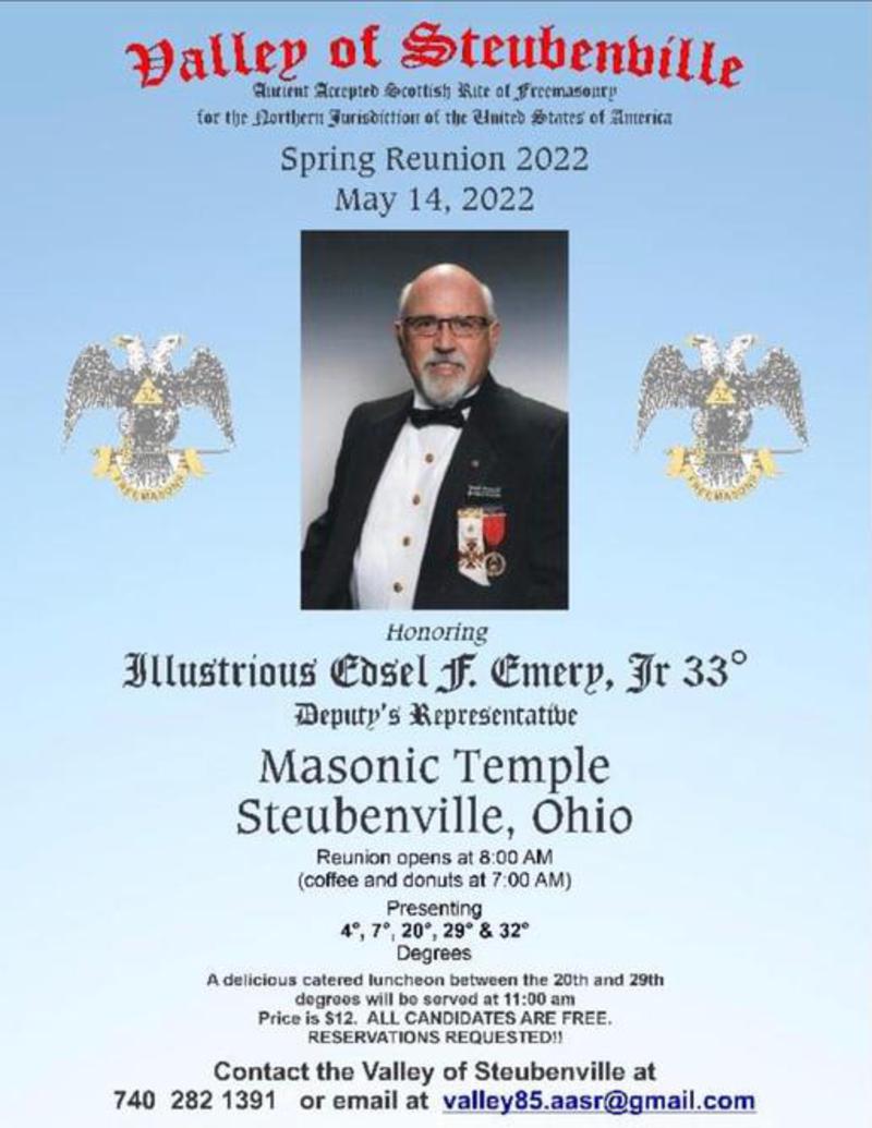 George Monroe has scheduled practices for the 7th degree on April 24, 2022 at 2 PM at the Masonic Hall and May 1, 2022 after the 32° practice.